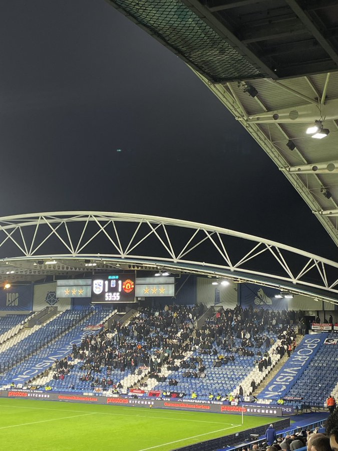 Manchester United‘s Under-21s were in action on Tuesday night at the John Smith’s Stadium, where they were beaten comfortably by Huddersfield Town in the Bristol Street Motors Trophy. It was quite literally men against boys in Town’s 4-1 triumph, but what should illicit most United pride is the vocal away crowd that turned out to support their next generation.