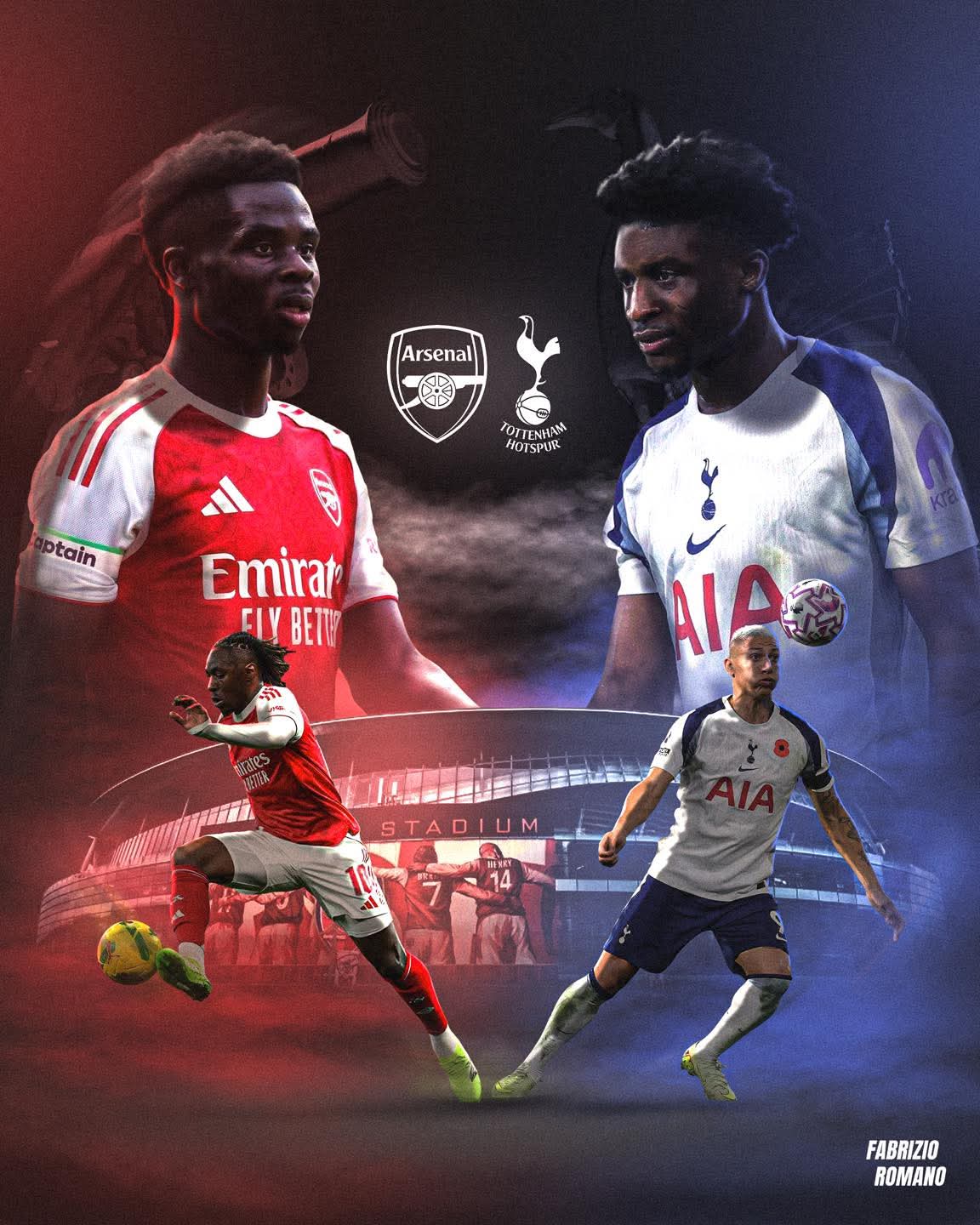 Arsenal hosts Tottenham Hotspur in a pulsating North London Derby at the Emirates Stadium on November 23, 2025. The Premier League leaders aim to extend their 14-match unbeaten streak against a resurgent Spurs side sitting fifth in the table. Kickoff arrives at 4:30 PM GMT, with Arsenal favored to maintain their dominance in this historic rivalry.