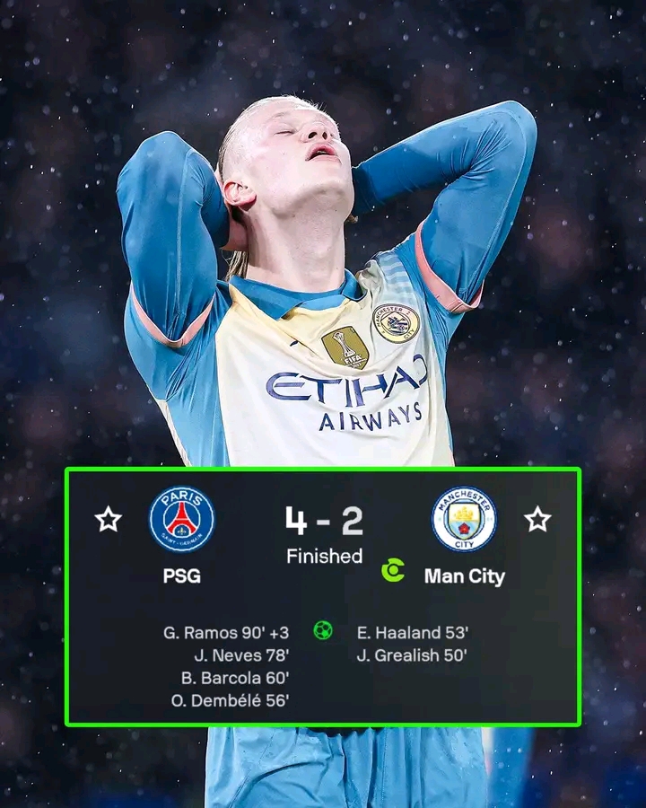 However, in a dramatic second half, PSG staged an incredible comeback, leveling through Ousmane Dembele and Bradley Barcola before Joao Neves headed home to put the hosts ahead. Goncalo Ramos sealed the win with a fine strike in stoppage time, leaving City needing a victory over Club Brugge in their final game to reach the play-off round.
