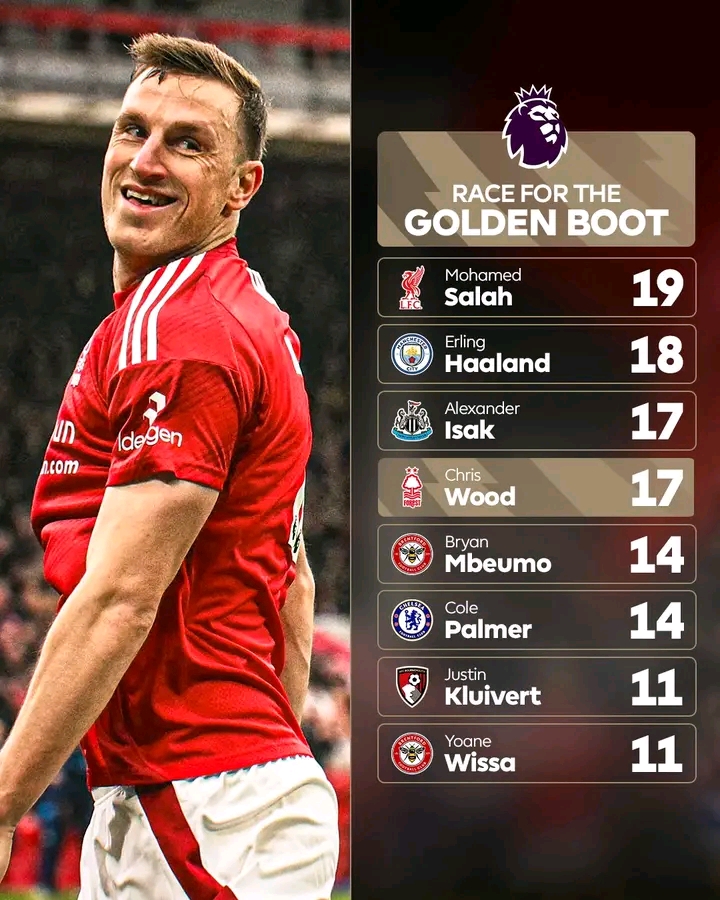 Chris Wood of Nottingham Forest has become a strong competitor, scoring 17 goals this season. Besides boosting his individual count, his recent hat-trick in a dominating 7-0 triumph over Brighton and Hove Albion confirmed Forest’s rank within the top four. Forest’s front play has benefited greatly from Wood’s physical presence and flying ability.