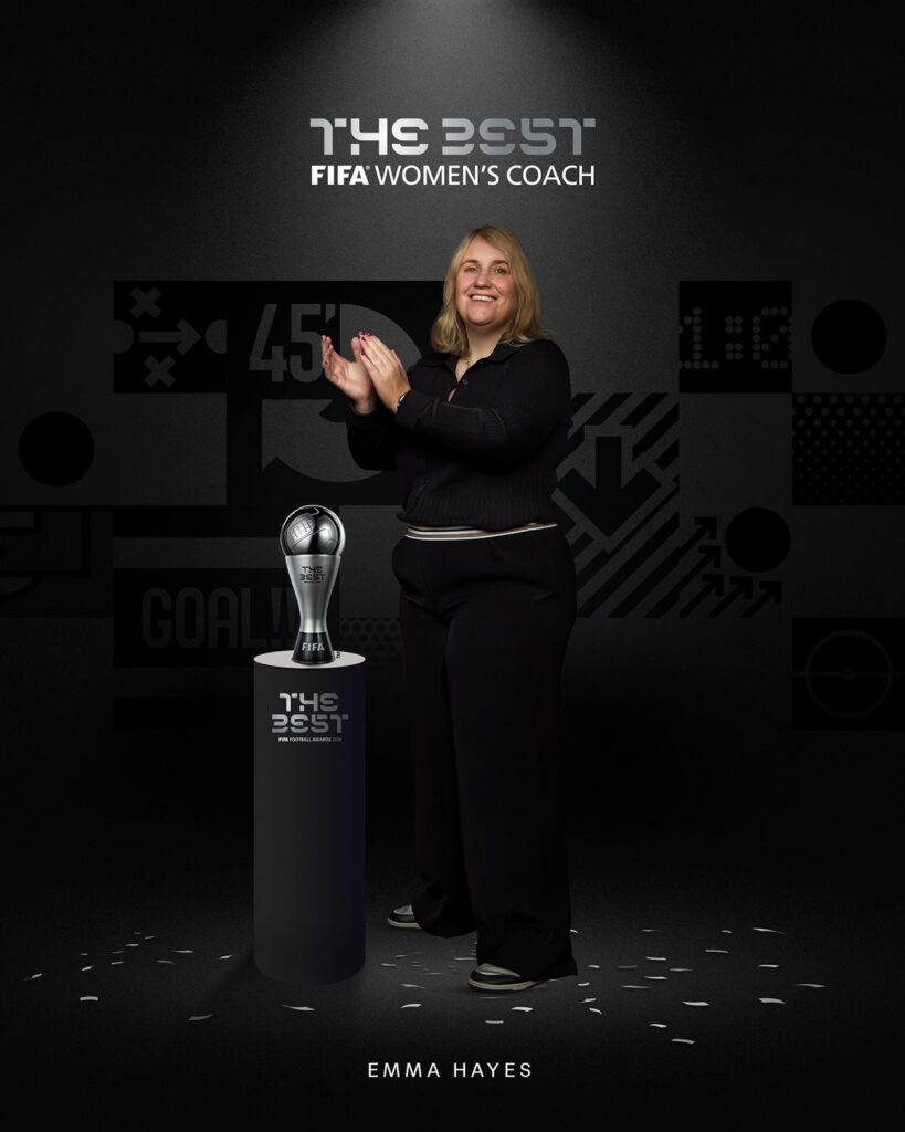 The Best FIFA Women’s Coach 2024 award was presented to Emma Hayes, head coach of Chelsea FC and the England women’s national team. Hayes has been a transformative figure in women’s football, leading Chelsea to multiple titles while promoting a competitive environment that nurtures young talent. Her innovative coaching methods and commitment to excellence have significantly influenced women’s football in England.