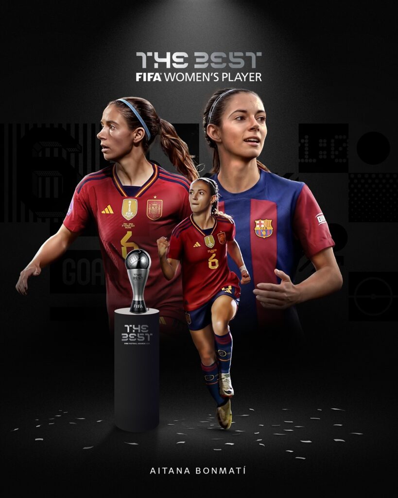 The Best FIFA Women’s Player 2024 award went to Aitana Bonmatí, representing Barcelona and Spain. Bonmatí’s exceptional playmaking abilities and leadership were instrumental in Barcelona’s success during the season, including their triumph in domestic and European competitions. Her vision, technical skills, and ability to perform under pressure have made her a standout player in women’s football, earning her recognition for the second consecutive year.